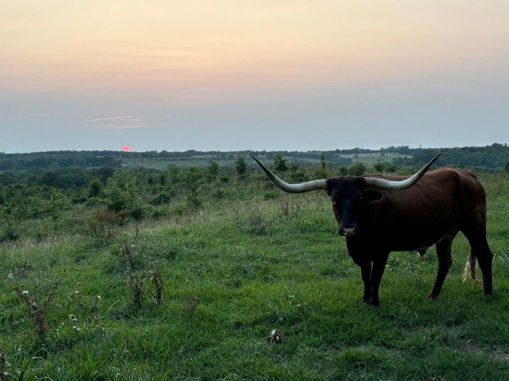 Fast forward fifty years, and I found myself on a farm in the middle of nowhere in Kansas. This place, with its log cabin reminiscent of Yellowstone, had been in the owner’s family for over 180 years and was now a popular wedding venue. Off the grid in every sense—no phone or internet—this farm had 81 Texas Longhorns, not counting the calves. The owner was always talking about reducing the herd, but it only seemed to grow.