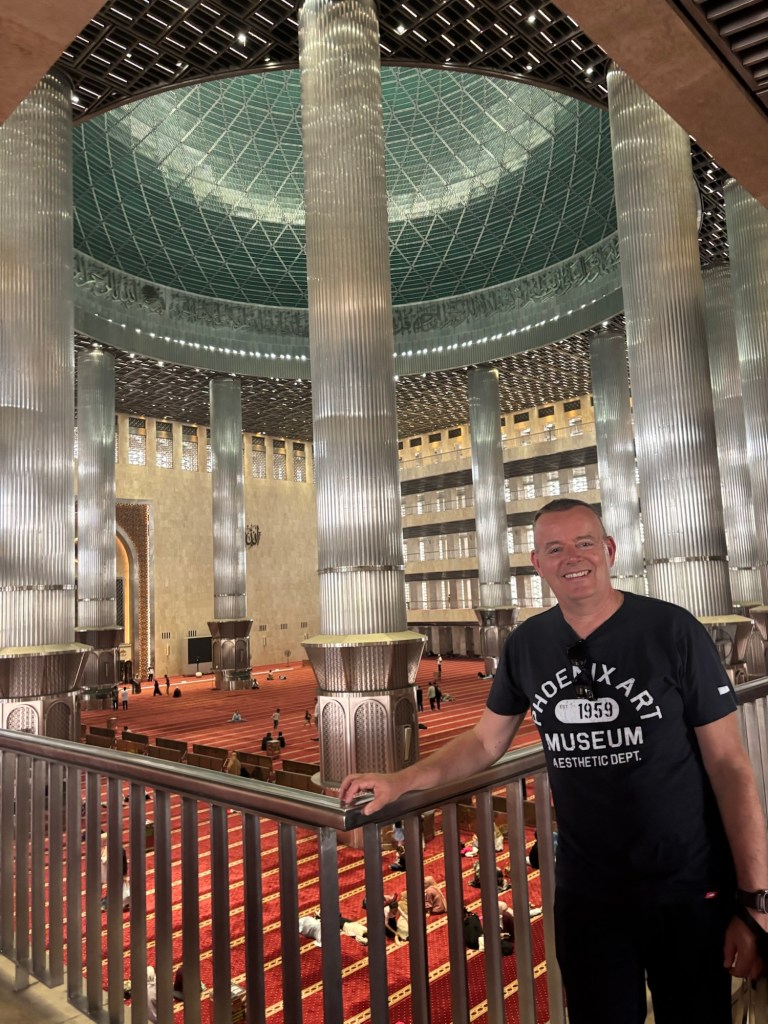 First stop: the Istiqlal Mosque—“Istiqlal” means independence, and the building is as symbolic as it is impressive. Fun fact: it was designed by a Christian architect. The dome spans 45 meters, representing 1945, the year of Indonesia’s independence. Right across the street? A Catholic cathedral, proudly parked there as a shining example that yes, different faiths can live peacefully side-by-side—sometimes just across the road.